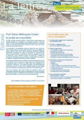 Port Seine-Métropole Ouest : le projet se concrétise. En 2020, le projet, porté par HAROPA PORT, va faire l’objet d’une enquête publique du 17 septembre au 30 octobre prochain. À l’issue de celle-ci, et une fois les autorisations administratives obtenues, la première phase du projet pourra ainsi entrer en travaux fin 2021, pour une mise en service du port à partir de 2023.